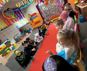 29.01.2026 r. w naszym przedszkolu odbył się uroczysty bal przebierańców – wydarzenie długo wyczekiwane przez wszystkie przedszkolaki. Tego dnia sala zamieniła się w kolorową, bajkową krainę. Można było spotkać dzieci przebrane m.in. za policjantów, księżniczki oraz wiele innych ciekawych i pomysłowych postaci. Nie zabrakło radosnych zabaw, tańców i wspólnych pląsów przy muzyce.