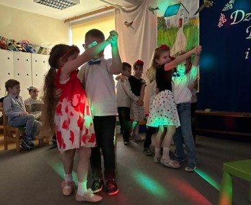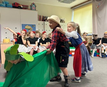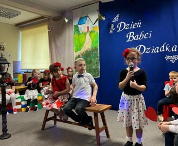 Dzieci przygotowały dla swoich gości dwa wyjątkowe przedstawienia. Młodsza część grupy wystawiła inscenizację do wiersza Juliana Tuwima „Rzepka”. Mali artyści wcielili się w role babci, dziadka, pieska oraz innych zwierząt, które wspólnie pomagały wyciągnąć rzepkę. W drugiej części uroczystości dzieci przeniosły swoich drogich dziadków w czasy ich młodości. Przedstawienie pt. „Jak babcia z dziadkiem się poznali” ukazywało historię poznania się bohaterów – od zabawy w remizie, przez długie spacery, aż po oświadczyny i ślub. Było zabawnie, ale też bardzo wzruszająco. nagrodzili występy swoich wnuków gromkimi brawami i czułymi przytulasami.