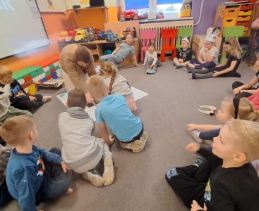 Podczas zajęć dydaktycznych rozmawialiśmy o budowie kota oraz jego zwyczajach. Poznaliśmy także inne zwierzęta należące do rodziny kotowatych. Dzieci z dużym zainteresowaniem słuchały ciekawostek i chętnie dzieliły się swoimi doświadczeniami związanymi z domowymi pupilami.