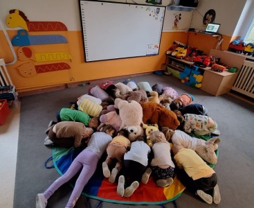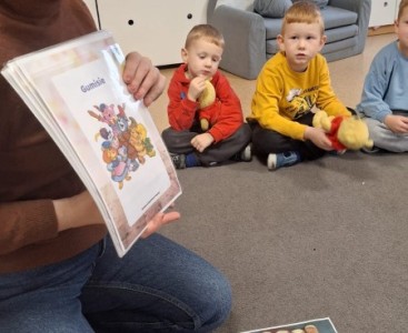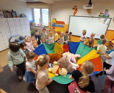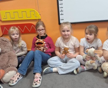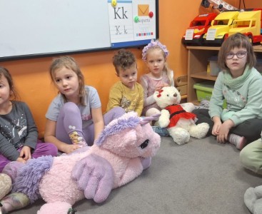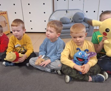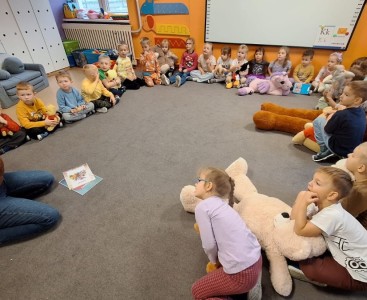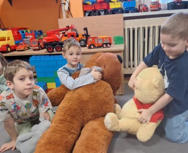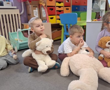 Nie zabrakło również zabawy przy muzyce – misie „tańczyły” razem z przedszkolakami do dobrze znanej piosenki „Stary niedźwiedź mocno śpi. W czasie zajęć dzieci poznały także historię pluszowego misia, dowiedziały się, skąd wzięła się jego popularność i jak stał się ukochaną zabawką dzieci na całym świecie.