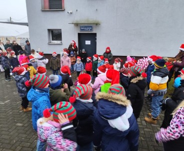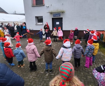 Jarmark rozpoczął się od występów przedszkolaków, a następnie na scenie zaprezentowały się dzieci szkolne. Mali artyści przedstawili piękny, typowo świąteczny program artystyczny, który wprowadził zgromadzonych gości w bożonarodzeniowy nastrój i został nagrodzony gromkimi brawami. Na uczestników jarmarku czekało wiele atrakcyjnych stoisk. Dużym zainteresowaniem cieszyło się stoisko z domowymi wypiekami, gdzie można było skosztować pysznych ciast, a także stoisko z gorącym kakao i napojami, które idealnie rozgrzewały w zimowy dzień. Nie zabrakło również loterii fantowej, stoisk z różnymi atrakcjami oraz konkurencji przygotowanych specjalnie dla dzieci, które dostarczyły im wiele radości i dobrej zabawy. Po części artystycznej jarmark odwiedził święty Mikołaj, który przyjechał w wyjątkowy sposób – pięknie oświetlonym traktorem z przyczepą. Była to ogromna atrakcja zarówno dla dzieci, jak i dorosłych. Każdy chętny mógł wybrać się na przejażdżkę tym niezwykłym, świątecznym pojazdem, co sprawiło uczestnikom wiele radości i wywołało mnóstwo uśmiechów.