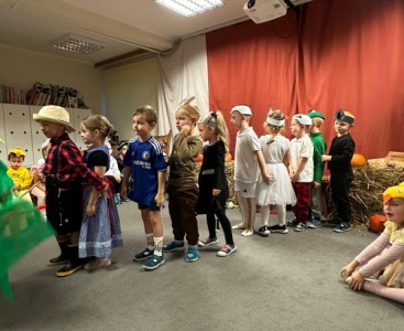 Dzieci z dumą zaprezentowały to, czego nauczyły się przez ostatnie dwa miesiące pobytu w przedszkolu. W programie artystycznym znalazło się przedstawienie pt. „Rzepka” Juliana Tuwima, które wzbudziło wiele uśmiechów i braw publiczności. Przedszkolaki zaprezentowały również choreografię do piosenki „Stary dziadek farmę miał”, a także inne jesienne piosenki i tańce przygotowane wspólnie z wychowawcami.