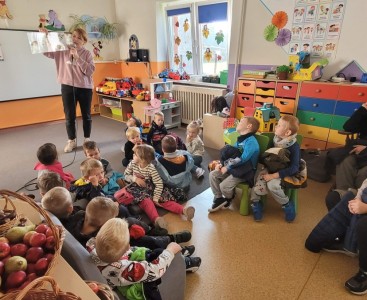 3 października uczniowie klas 1 – 3 wybrali się do przedszkola, by wspólnie z młodszymi kolegami i koleżankami świętować Dzień Pieczonego Ziemniaka.
