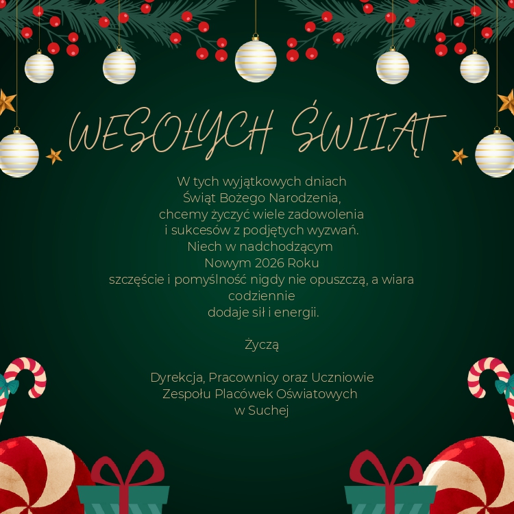 W piątek, 19 grudnia, mury Zespołu Placówek Oświatowych w Suchej wypełniły się wyjątkową, świąteczną atmosferą. Tego dnia społeczność szkolna wzięła udział w uroczystych obchodach zbliżających się świąt Bożego Narodzenia, które obfitowały w wiele wzruszających momentów.