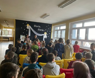 Artystki przeprowadziły słuchaczy przez wzruszającą opowieść, zaczynając od trudów poszukiwania miejsca na narodzenie Jezusa. Piękna narracja przeplatana była muzyką, a uczniowie z wielkim entuzjazmem włączali się we wspólne śpiewanie znanych kolęd i pastorałek.